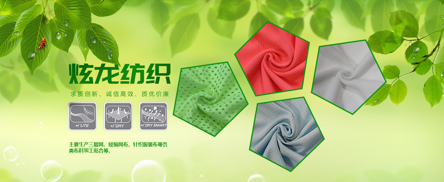 泉州市炫龍紡織科技有限公司位于中國福建晉江--中國鞋都,是一家集研發(fā)、生產、銷售為一體的紡織企業公司。主要生產:三層網、經編網布、針織服裝布、休閑時尚女裝網布、鞋用各類BK布、拉毛布、大小提花布、賈卡提花、3D飛織、各類布料加工貼合等。 公司秉承“求質創新、誠信高效、質優(yōu)價廉”的經營理念為宗旨,竭誠為廣大海內外客戶求創一流的服務及優(yōu)質的品質,歡迎海內外的客戶供樣、定制及洽談合作。